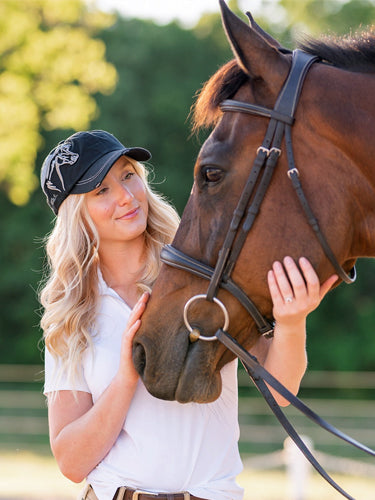 - Dark shaded grey Sport Horse with elegant woodland-inspired design